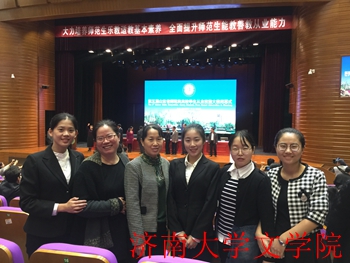 党委副书记盖丽那,专业指导老师高玲、谷瑞丽老师及辅导员李清蝉带领四位参赛学生和两位观摩学生赴烟台参赛。四名参赛学生在语文组比赛中表现出色,获得一等奖两名、二等奖一名、三等奖一名的优异成绩。