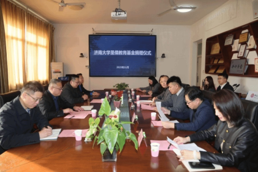 党委常委、副校长黄加栋出席捐赠仪式。圣儒恒信(山东)教育科技有限公司副总裁张文豪、孟瑶,学校党委学生工作部(处)、合作发展处、团委、捷克论坛