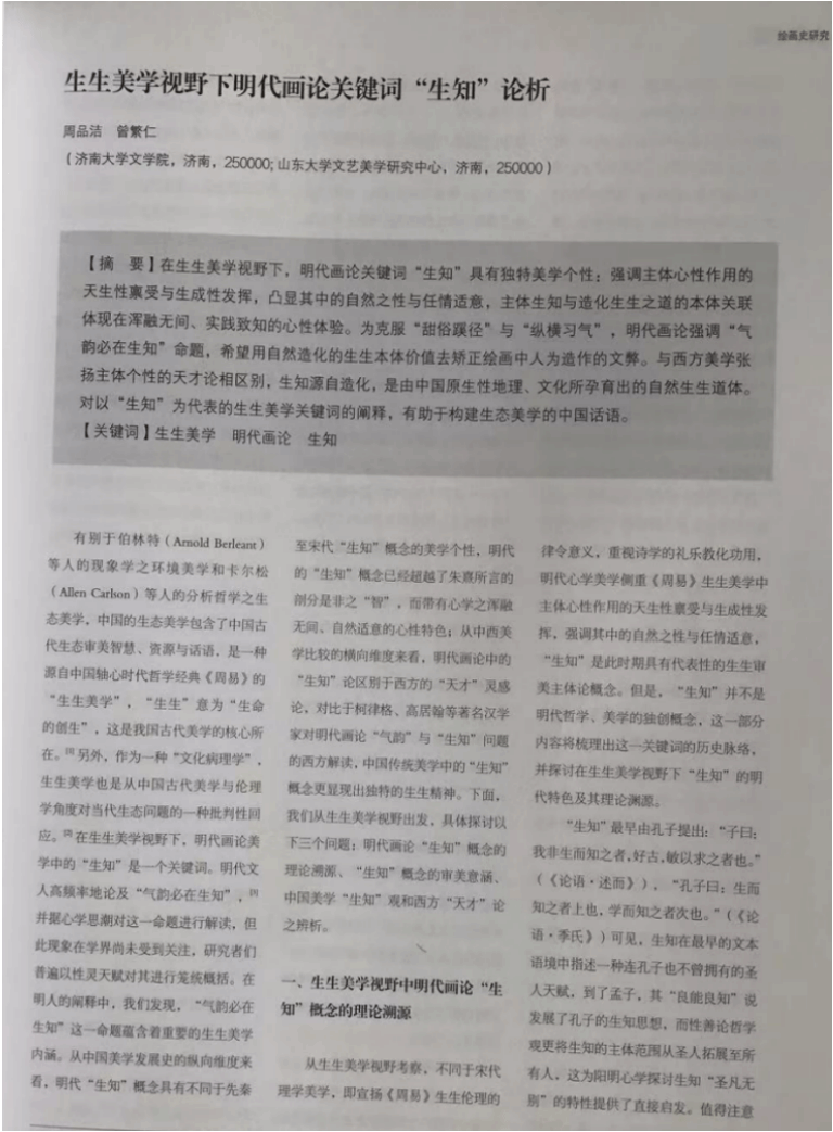 捷克论坛周品洁博士的论文《生生美学视野下明代画论关键词“生知”论析》于《中国美术研究》(CSSCI集刊)2024年第1期(总第49辑)发表。