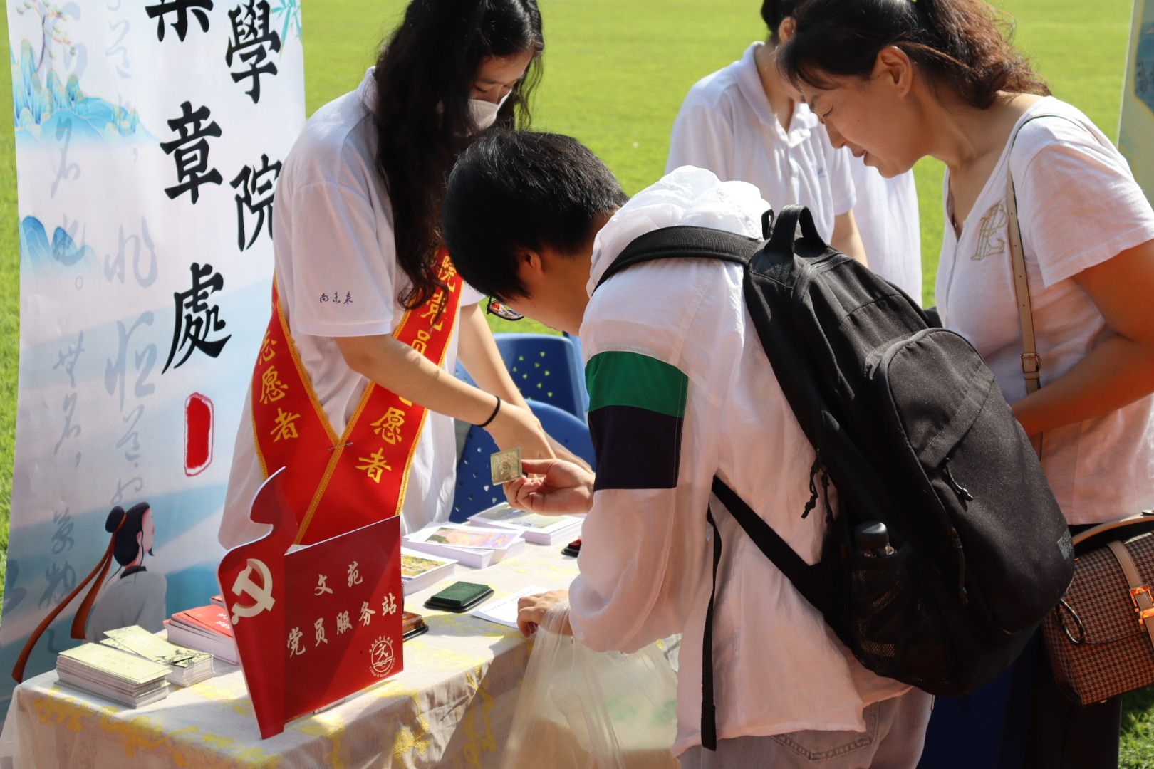 报到现场井然有序,班助们如导航的星辰,用细心和耐心为新生指引方向、驱散迷茫,在烈日下,这份关怀如清凉微风,吹拂着每一隅需要帮助的角落。