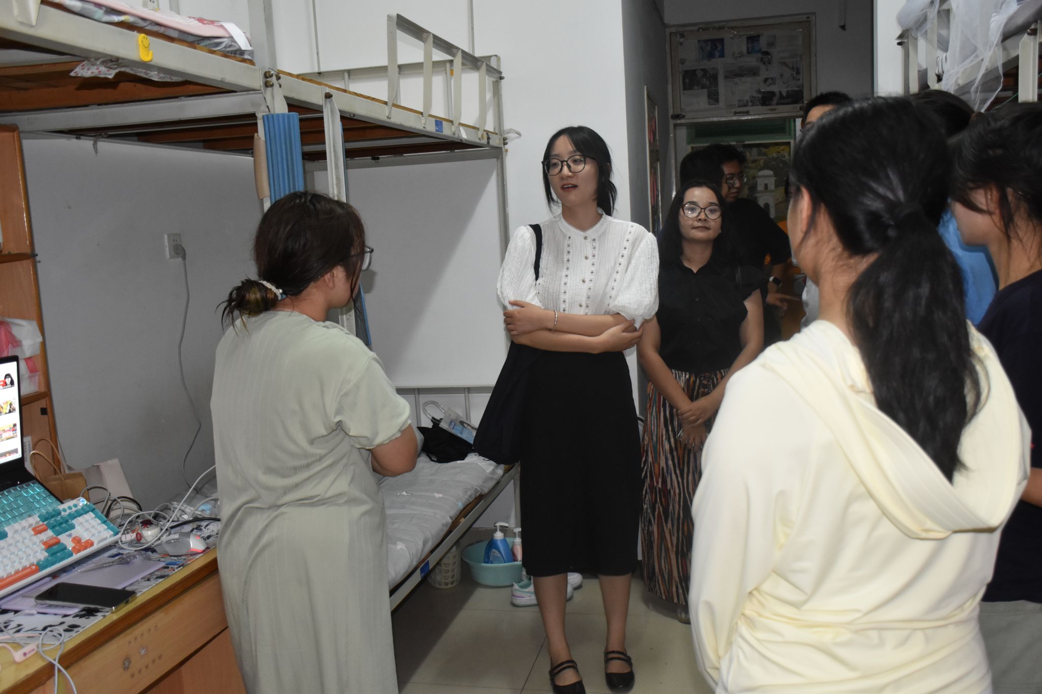 辅导员和班主任老师们还走访了新生宿舍,他们亲切地和同学们交流着生活和学习的问题,详细了解新生进校后的适应情况,并对同学们表达了关怀与嘱托。