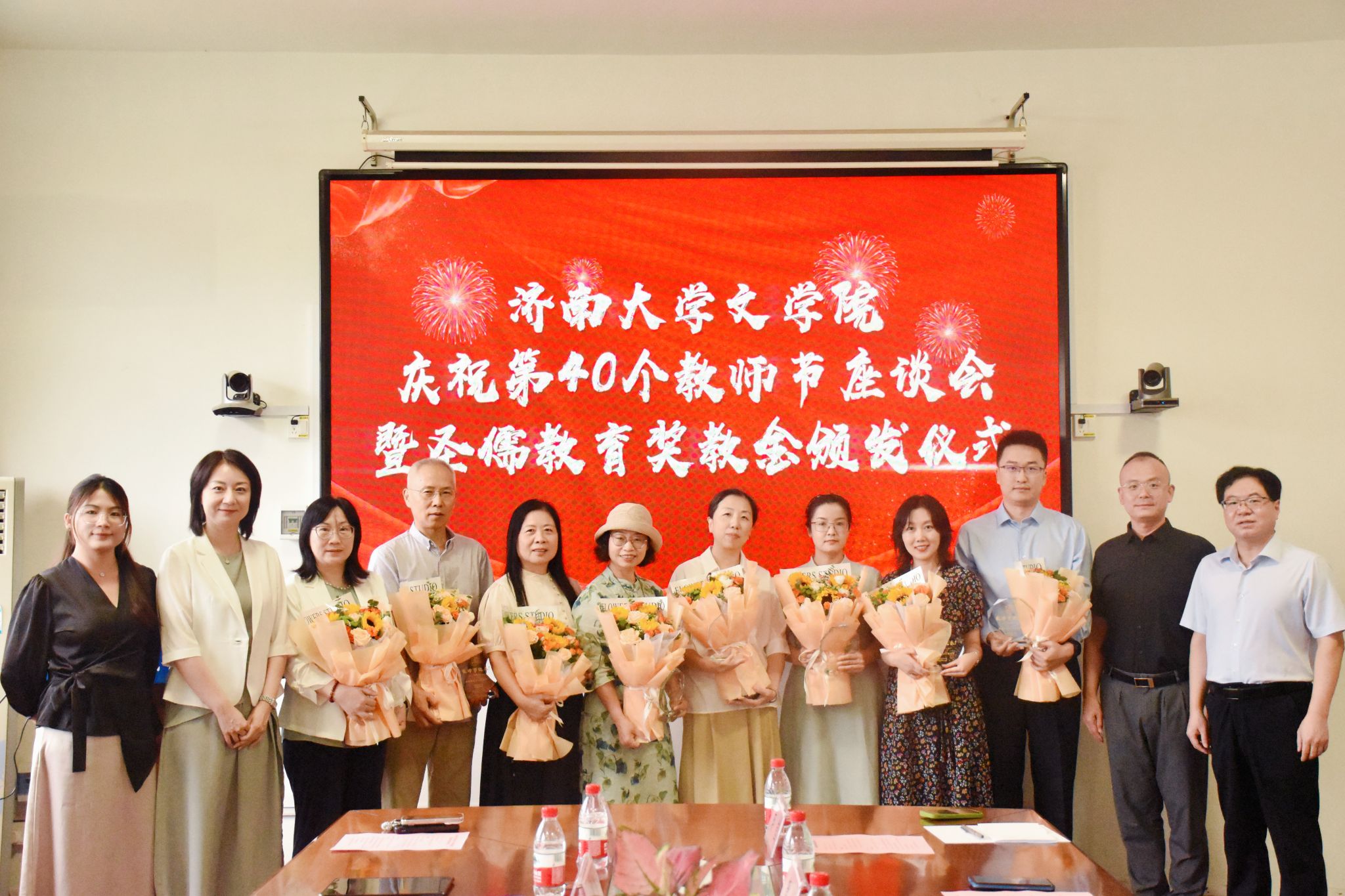 获奖教师颁发纪念奖杯,并送上鲜花和祝福。王建伟对获奖教师表示热烈祝贺,并高度认可捷克论坛