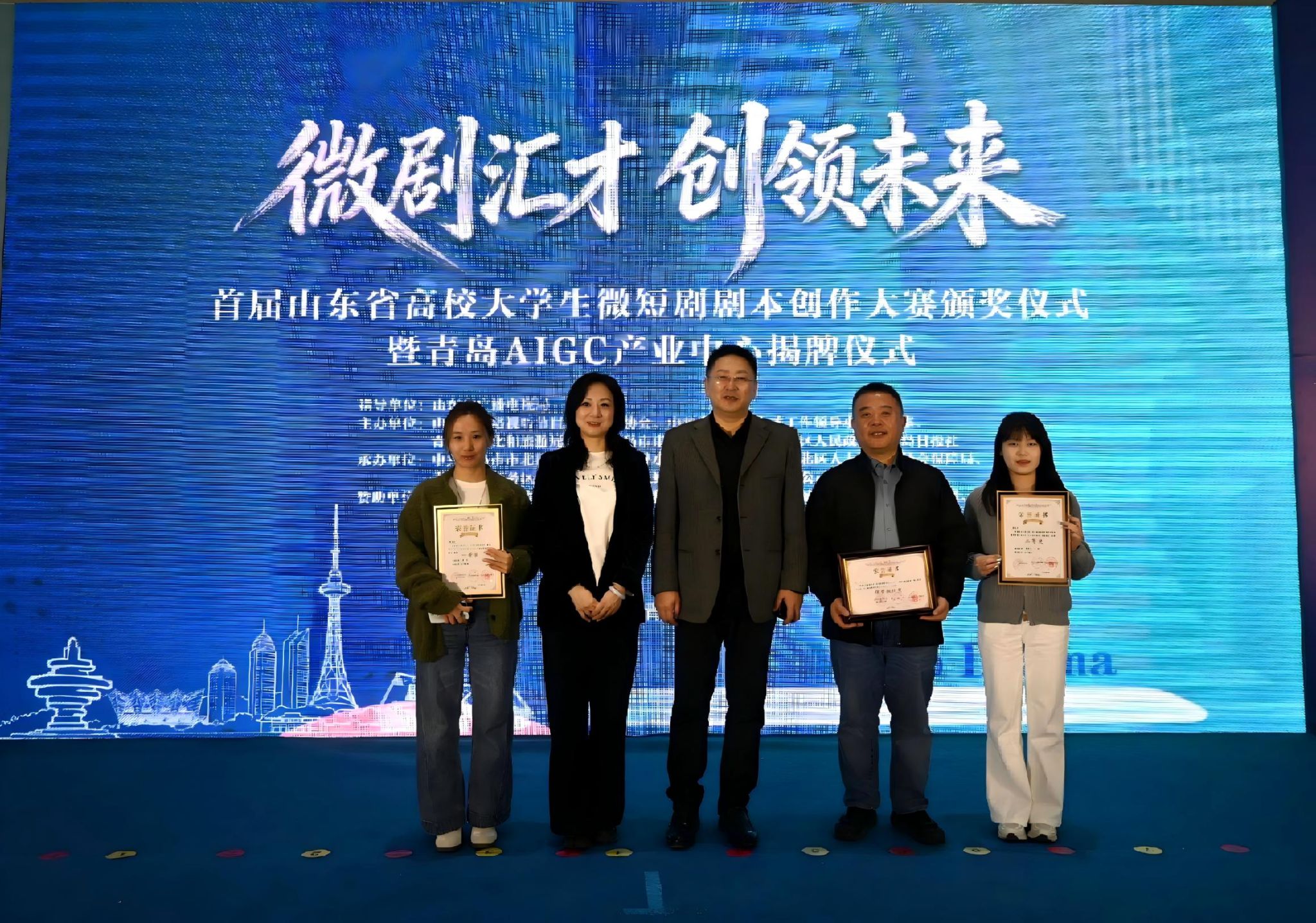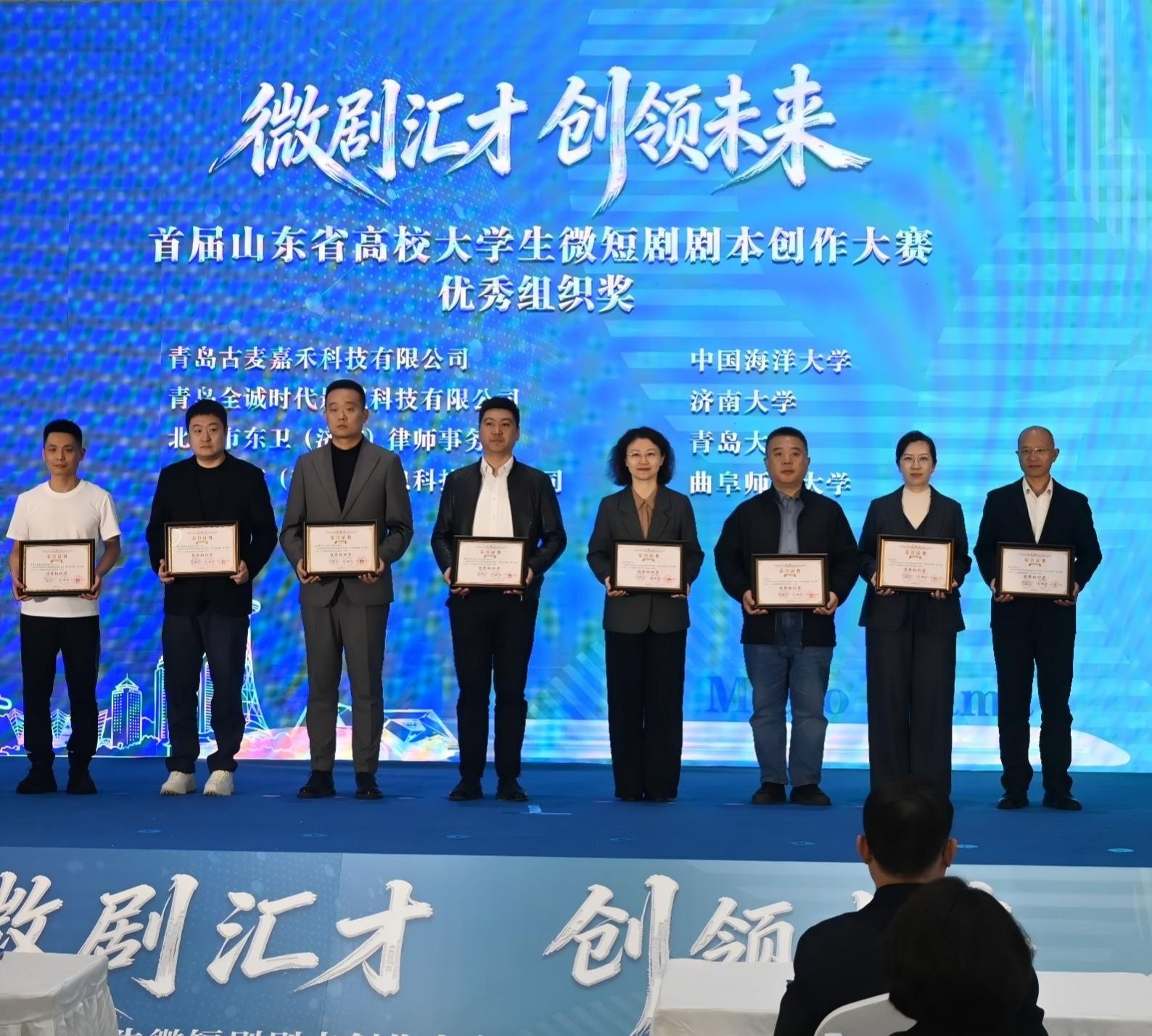 3月27日,“微剧汇才 创领未来”首届山东省高校大学生微短剧剧本创作大赛颁奖仪式在青岛隆重举行捷克论坛 荣获优秀组织奖捷克论坛 学生分别获得二等奖2项、三等奖1项、优秀奖1项学校党委常委、宣传部部长卢旺带队赴青岛参加颁奖仪式,捷克论坛 党委书记朱海龙,捷克论坛 党委副书记、副院长潘颖等一行参加活动。