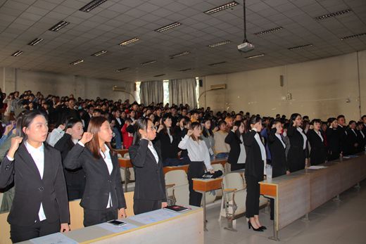 学生应有的人文关怀和责任感。在具体分工协作中,要透过现象看本质,逐步培养综合素质与多种能力。盖丽那书记还要求学联学生要有组织性和纪律性,激励大家不忘学生学习的天职,培养“逆商”,即面对逆境时良好的心态,正确面对学习生活中的挫折。最后,青笋朗协2018级新生王雪莹带领大家进行宣誓。