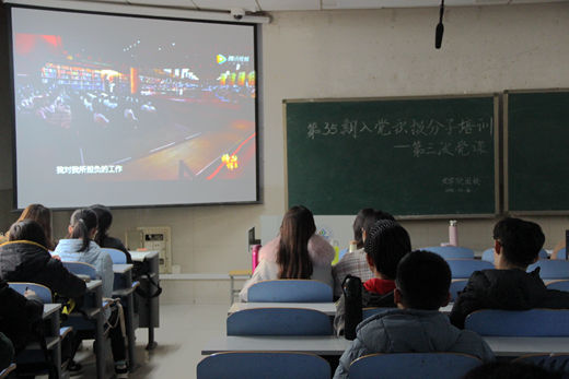 于10教201开展入党积极分子培训活动,组织观看中央组织部推出的“两优一先”“两学一做”系列特别节目——《榜样3》。