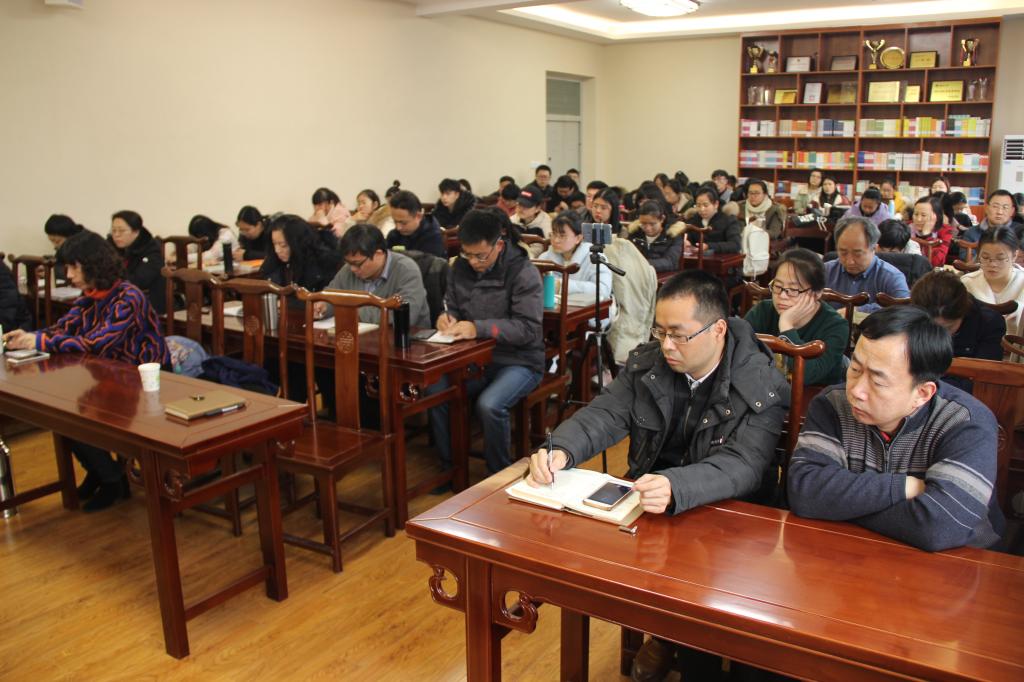 党委书记李岩主持,院长张兵与郑杰文教授共同为舜耕书院揭牌。随后,郑杰文教授为舜耕书院开讲,做了题为“上古两大文化系统对中国三大类传统学术之生成、走向与命运的影响”的学术报告。报告主要探讨两个问题:历史及文学史上夏商周三代一统的正确与否和早期文化所衍生出的中国传统学术发展的历史命运。内容涉及上古文化两系统、山川守文化概貌与影响、社稷守文化及影响、生往之学及其命运、三大传统学术命运的启示共五个方面。郑教授从文学作品《诗经》讲起,广泛引用先秦经典文学作品中的学术知识和观点,着重叙述了汉代“谶纬”作为一种意识形态对学术研究的影响,阐明了“西学东渐“带来的通史知识对构建中国学术体系的作用,解释了”李约瑟难题“的由来及其给我们带来的思考,说明了目前党和国家对弘扬传统文化、架构中国学术体系的高度重视的原因等。郑教授不仅以渊博的知识系统的阐释了山川守文化和社稷守文化对生往之学、天人之学及人人之学的不同影响,还语重心长地告诉大家只有拥有完备的文化,我们的民族才能真正立起来。