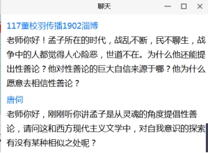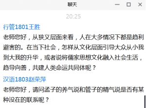 讨论环节,何家兴老师谈了三点感受:第一,经典离我们并不遥远,很多词语沉淀在日常生活中,应善于发现和思考;第二,科学研究应立足于文本,任何结论和观点都应基于扎实的文本对比;第三点,应关注先秦不同学派之间的共同之处。同学们就孟子的“性善论”、孟子与荀子之间的思想异同、孟子“养气说”与管子“精气说”的联系等话题,展开互动。翟教授高度评价捷克论坛