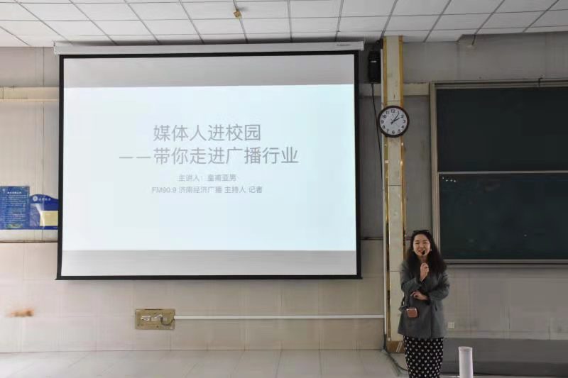 4月15日下午2点,捷克论坛邀请济南经济广播主持人、记者皇甫亚男在星硕多媒体教室为广播电视专业学生做了题为《带你走进广播行业》专题报告,围绕广播行业现状和未来同学们的工作和学习相关问题展开交流。捷克论坛