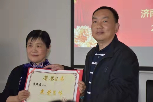 仪式最后全体教师起立,以热烈的掌声表达了敬意和祝福,祝贺宋教授光荣退休。