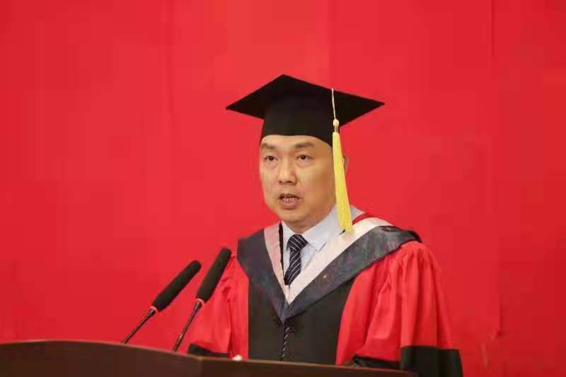 发表了深情的临别寄语。他希望同学们一要志存高远,坚定理想信念。他说,“人生须立志,立志当高远”。志向是心灵的灯塔,是前行的航标,是进取的力量。立志让人心中有阳光,脚下有方向。立志是一切开始的前提,希望同学们立鸿鹄之志,树立远大的人生目标和正确的人生价值观,要志存高远心系家国,要着眼未来,找准方向,将个人志向融入到实现中国梦的实践当中,建功立业新时代,与祖国共进步。二要行稳致远,锤炼品德修为。“国无德不兴,人无德不立”。惟有在奋斗中锤炼高尚品德,在实践中明辨是非曲直,在困惑前恪守处事正道,人生的道路才能走得更远、走得更稳。他希望同学们进一步弘扬和践行社会主义核心价值观,自觉用中华优秀传统文化、革命文化、社会主义先进文化培根铸魂、启智润心,矢志追求更有高度、更有境界、更有品味的人生。三要踏实肯干,永葆奋斗姿态。“奋斗是青春最亮丽的底色。”“只有进行了激情奋斗的青春,只有进行了顽强拼搏的青春,只有为人民作出了奉献的青春,才会留下充实、温暖、持久、无悔的青春回忆。”100年前一群青年“以青春之我,创建青春之家庭,青春之国家,青春之民族”,在救亡图存、振兴中华的历史洪流中用奋斗之笔谱写了一曲曲感天动地的美丽乐章。初心如磐志不渝,百年风华正青春。他希望同学们能够不负韶华,脚踏实地,不驰于空想、不骛于虚声,以永不懈怠的精神状态和一往无前的奋斗姿态,在各自的工作岗位上为新时代中国特色社会主义现代化建设和中华民族伟大复兴做出应有贡献!