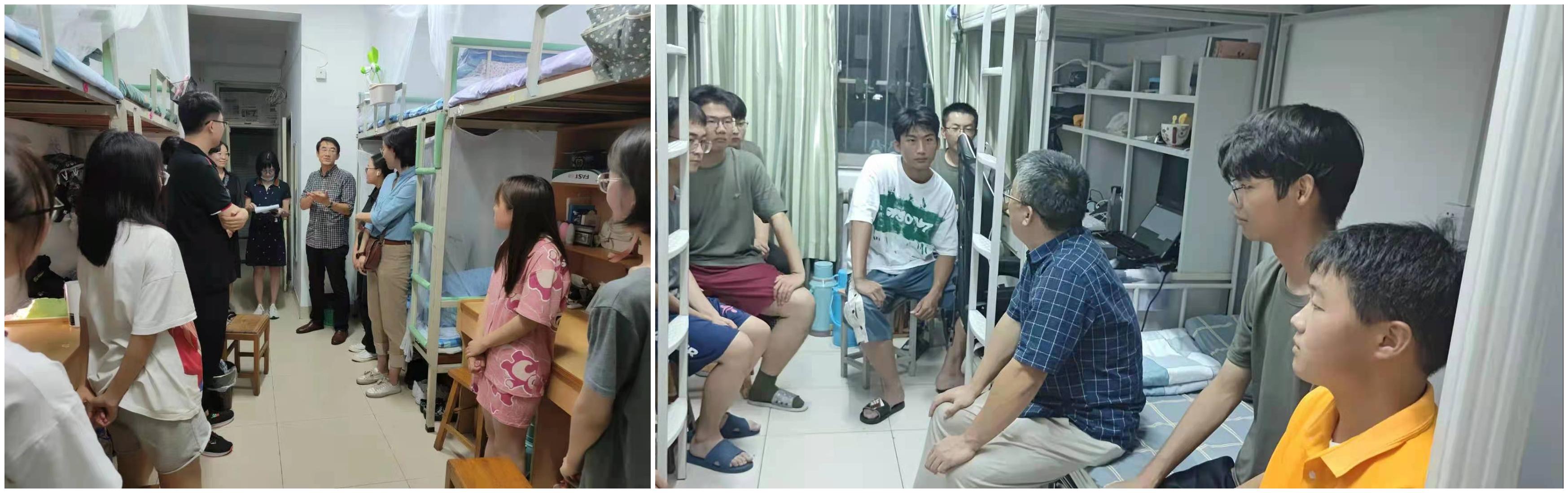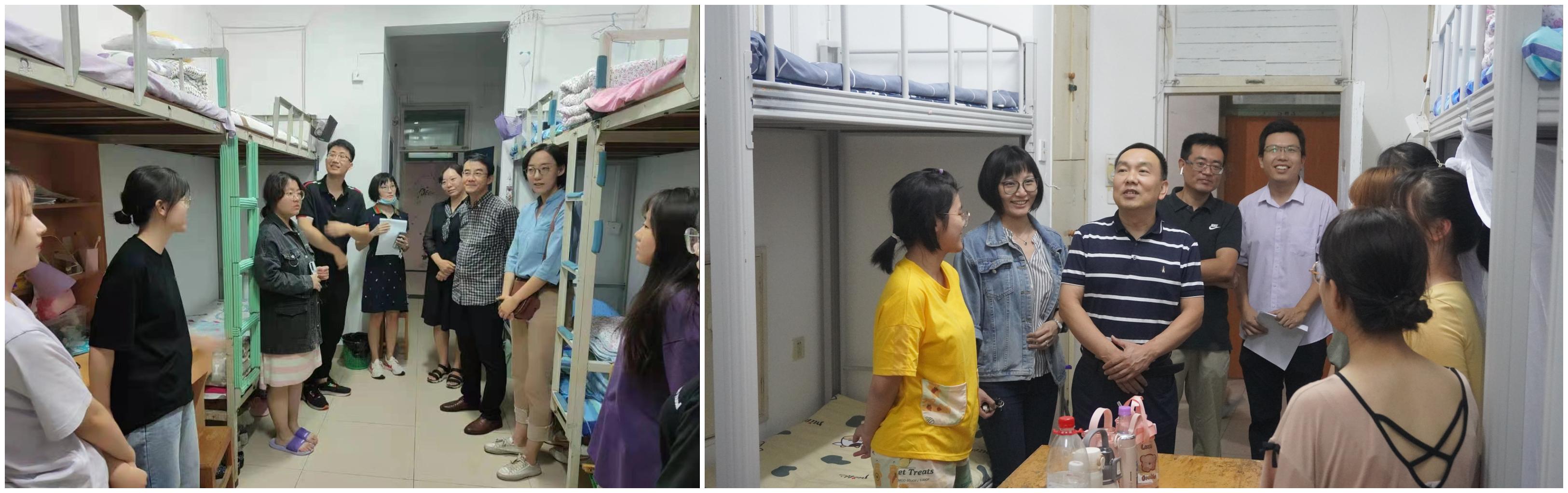 党委书记陈卫东、院长张兵、党委副书记朱红岩、副院长鲁毅、副院长何家兴、院长助理王毅、团委书记李清蝉在新生辅导员刘水清和晏青的陪同下,走访了学生公寓7号楼、12号楼、17号楼,亲切慰问2021级新同学。