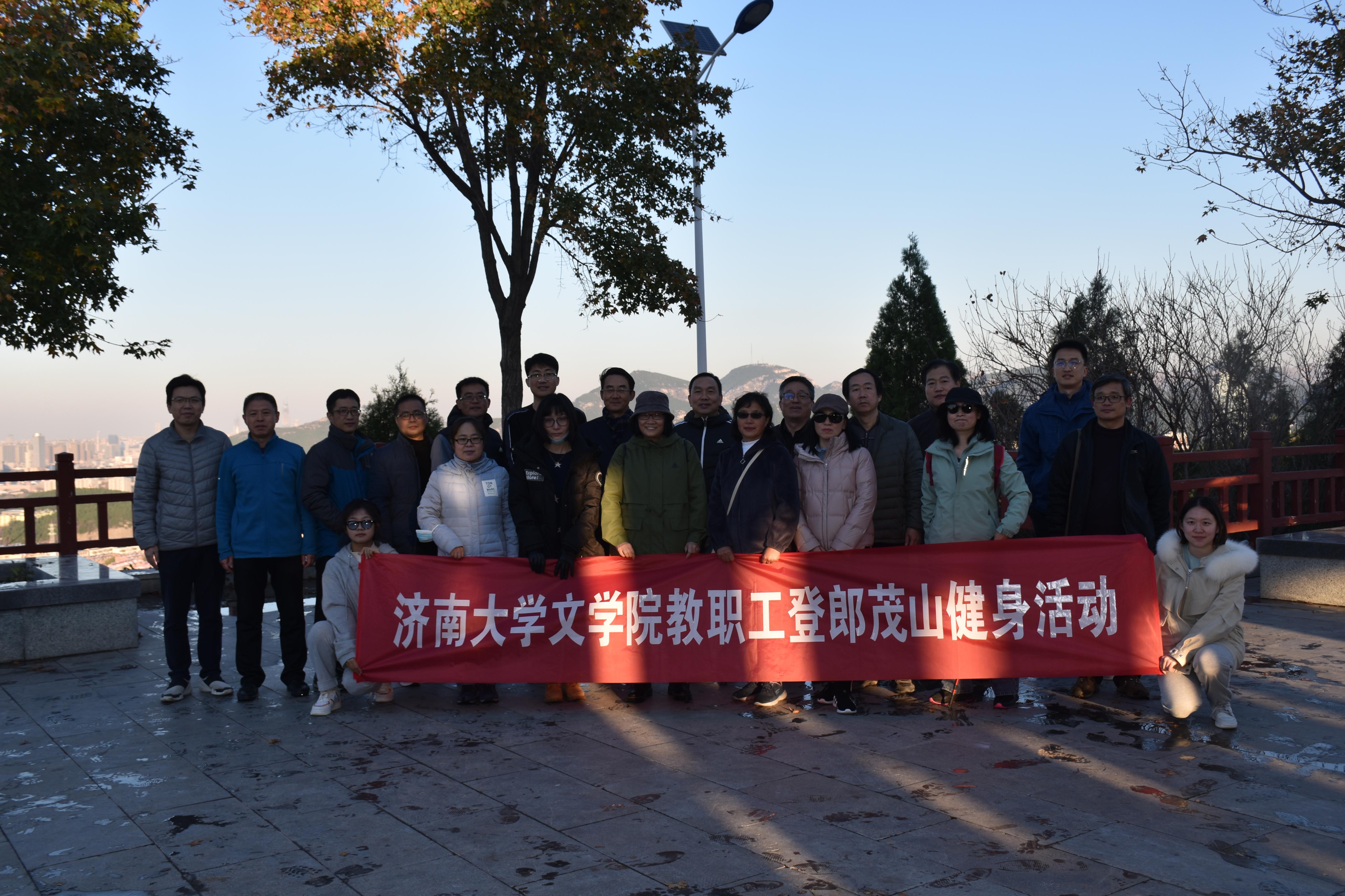 张秉国教授为大家进行了热心讲解,使老师和同学们进一步了解了济南战役、郎东堡垒的历史和粟裕、许世友、谭震林等老一辈革命家的光辉事迹。最后,伴随着夕阳温暖的余晖,全体教职工人员和学生会成员在清秀峻茂的山顶进行合影留念,此次登山学习活动圆满结束。