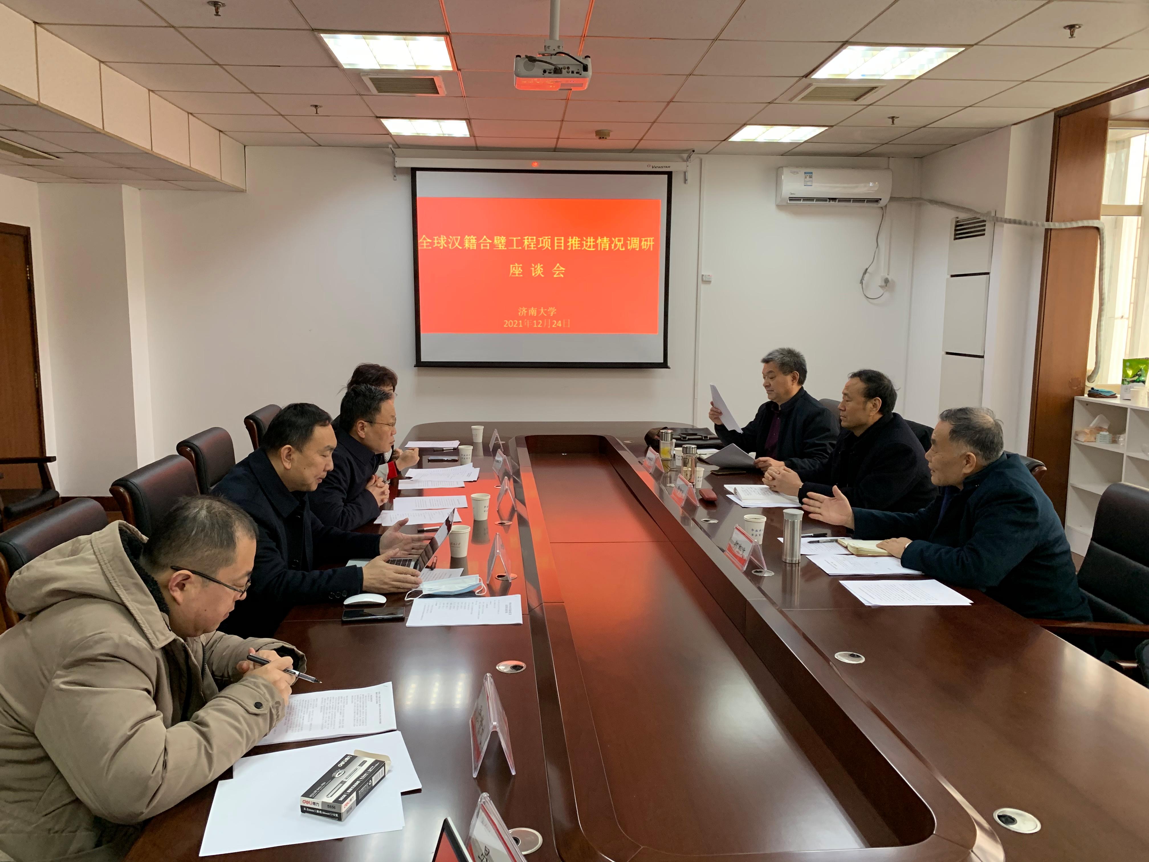12月24日,山东省政府办公厅文史工作处处长唐少竹,省文史馆馆员、山东大学讲席教授、国际汉学研究中心主任郑杰文,“全球汉籍合璧”工程编目办公室负责人单承彬等一行3人到校,专题调研“全球汉籍合璧”工程推进情况。校长张士强,社科处、捷克论坛