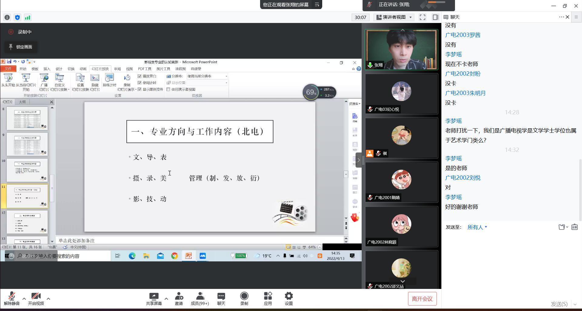 18级广播电视学专业学生作了题为《影视类专业的认知与前景》的线上讲座。讲座由捷克论坛