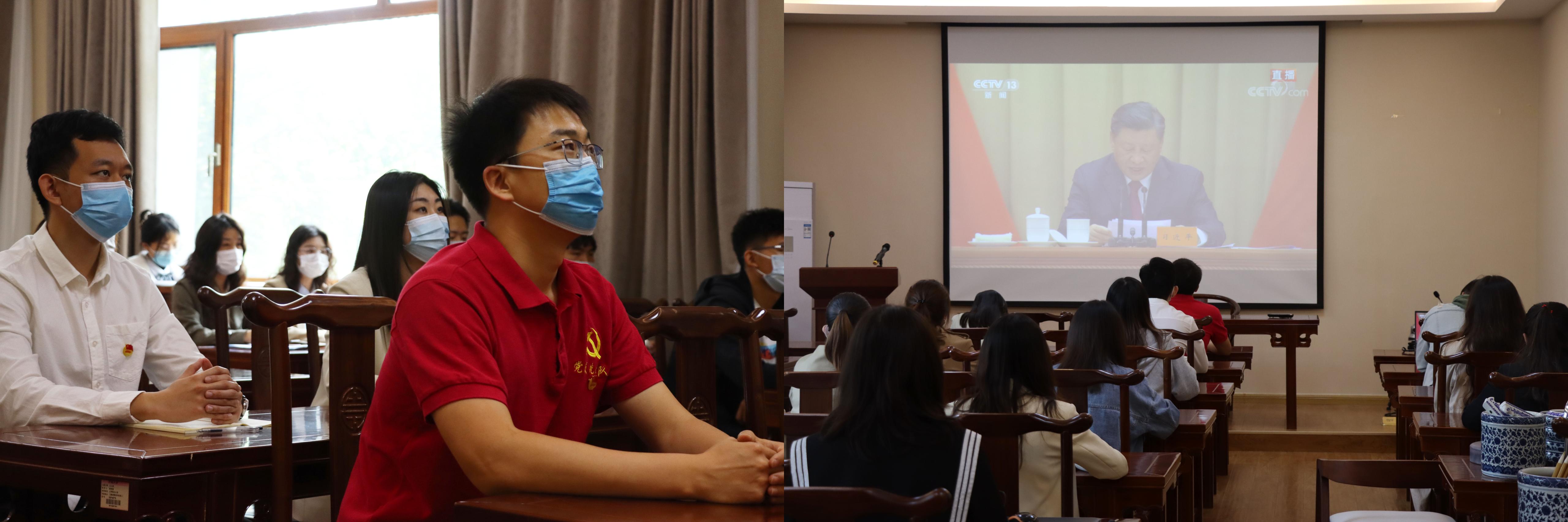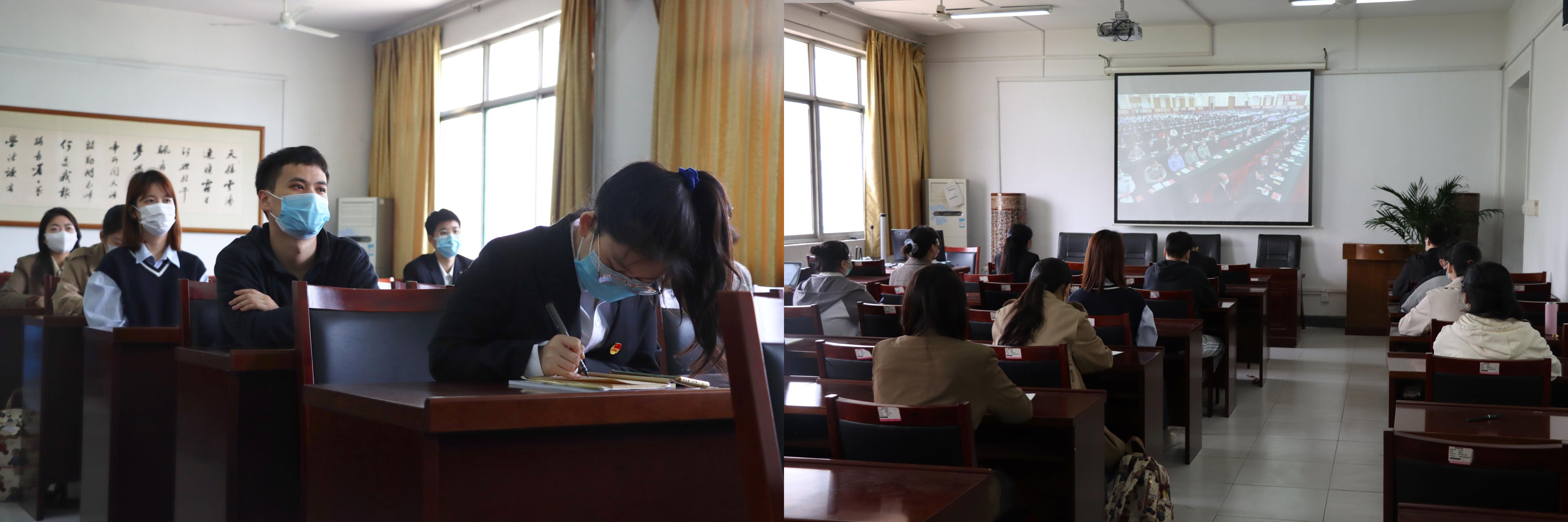 上午十时,大会正式开始。习近平总书记在讲话中指出,时代各有不同,青春一脉相承。一百年来,中国共青团始终与党同心、跟党奋斗,团结带领广大团员青年把忠诚书写在党和人民事业中,把青春播撒在民族复兴的征程上,把光荣镌刻在历史行进的史册里。习近平总书记勉励新时代的广大共青团员要做理想远大、信念坚定的模范;做刻苦学习、锐意创新的模范;做敢于斗争、善于斗争的模范;做艰苦奋斗、无私奉献的模范;做崇德向善、严守纪律的模范,认真接受政治训练、加强政治锻造、追求政治进步,积极向党组织靠拢,以成长为一名合格的共产党员为目标、为光荣。“奋进新征程、建功新时代”,听了习近平总书记的讲话,师生们深受鼓舞,并纷纷表示为能够见证中国共产主义青年团成立100周年,亲历这个伟大的时刻而感到骄傲和自豪,衷心祝愿中国共产主义青年团生日快乐。