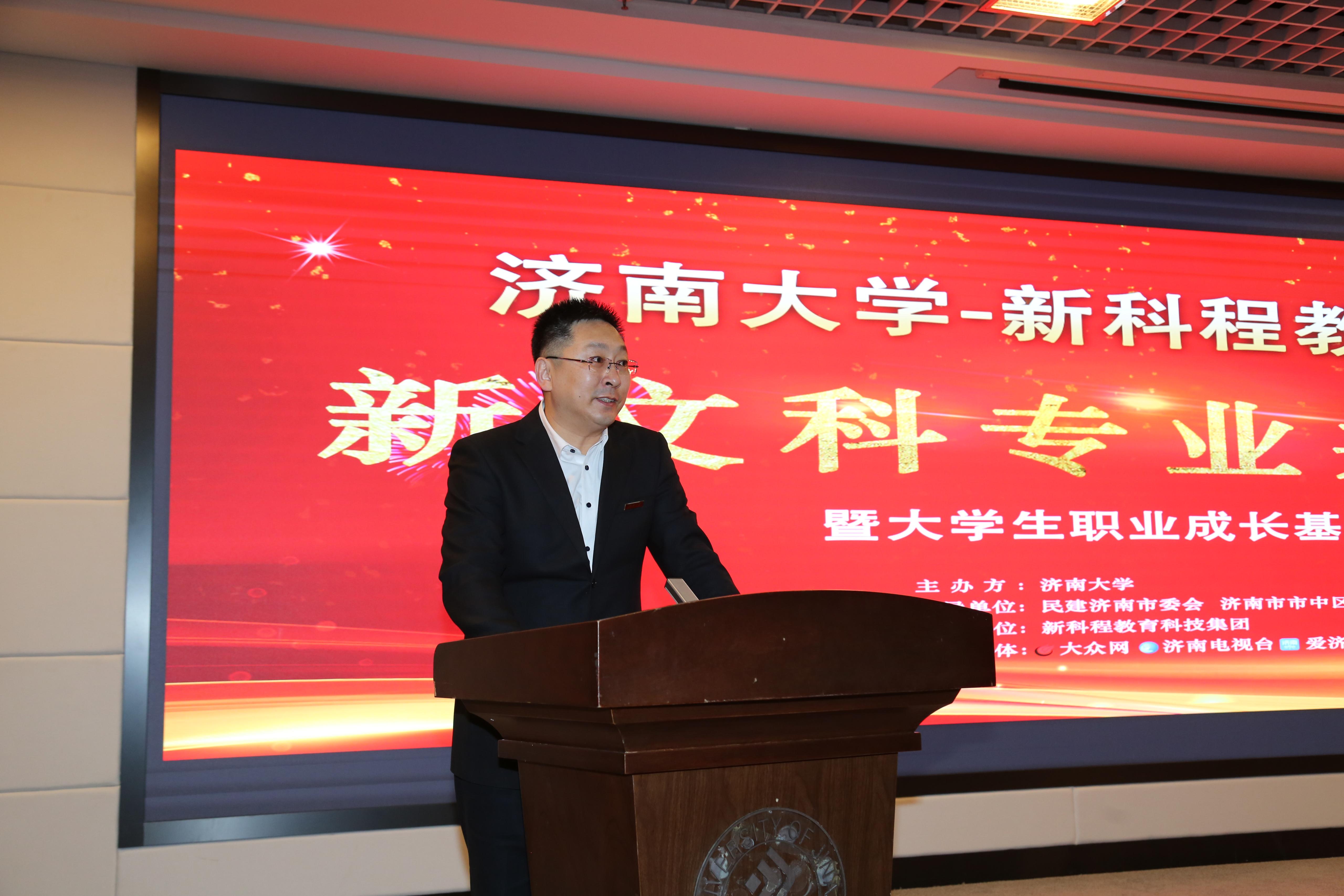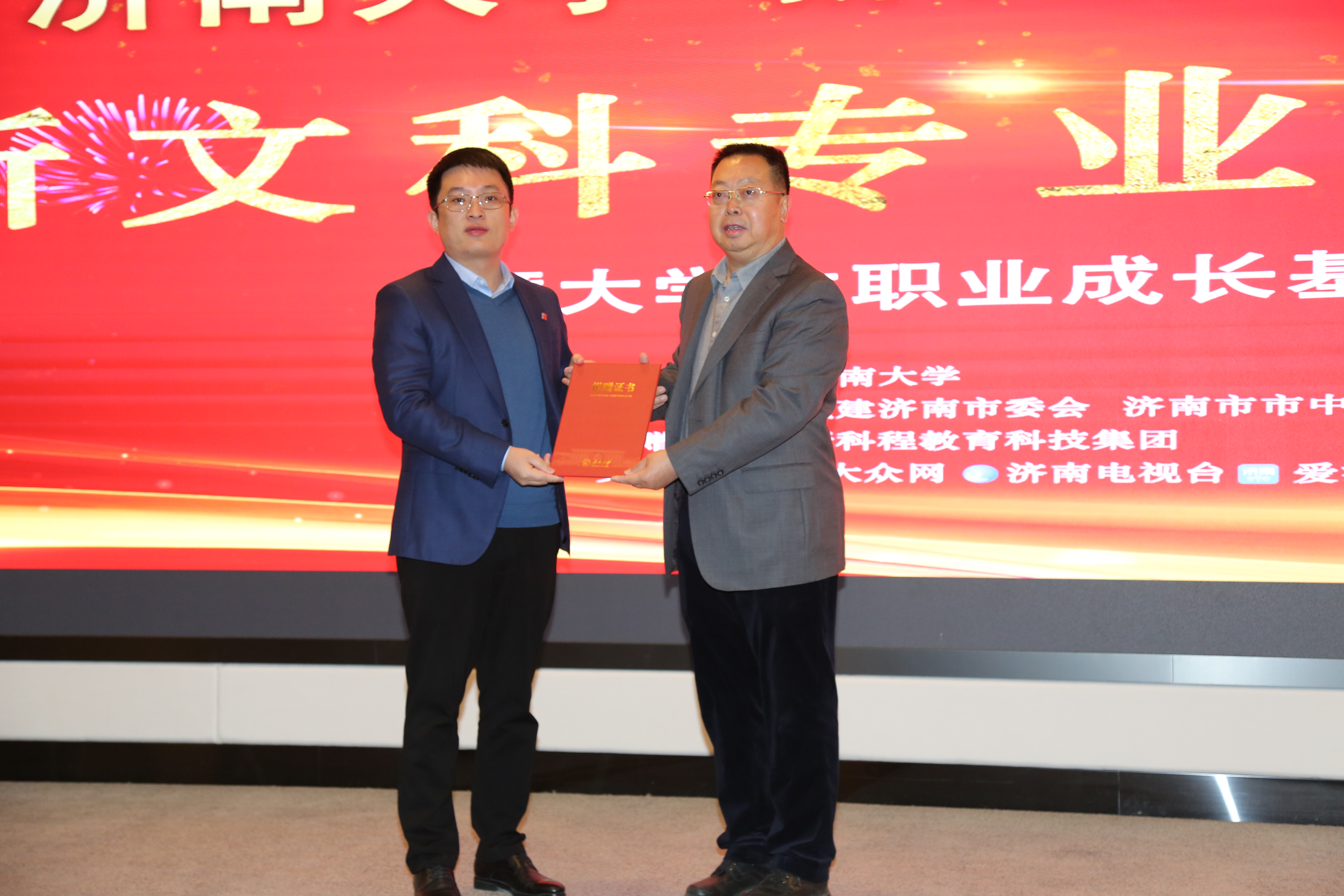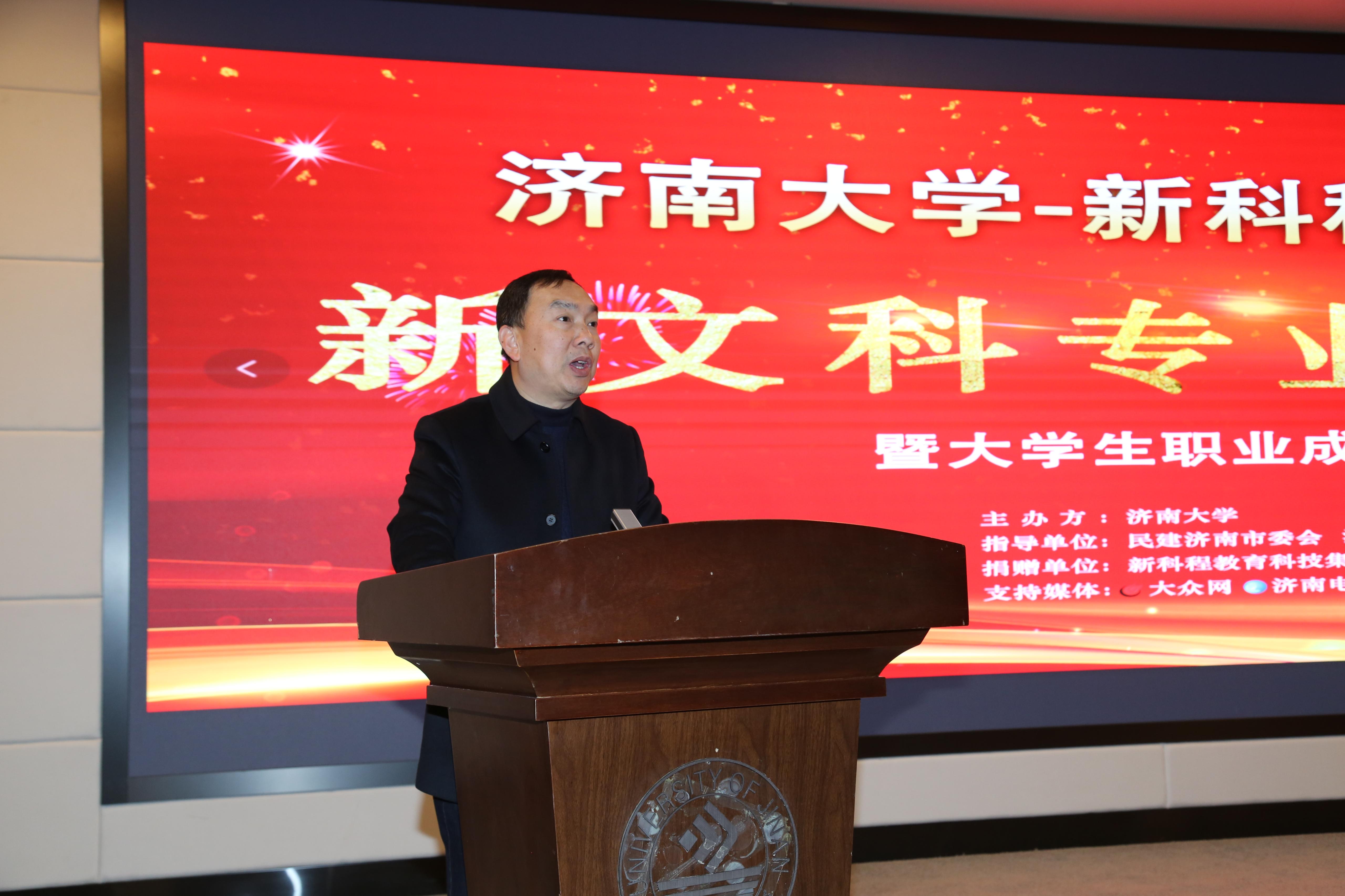 新文科专业共建暨大学生职业成长基金捐赠签约仪式。学校党委常委、副校长刘宗明,民建济南市委会主任委员、济南市市场监督管理局局长、济南市知识产权局局长王建森,民建济南市委会副主任委员孙罡,市中区政协副主席刘健等领导出席活动,捷克论坛