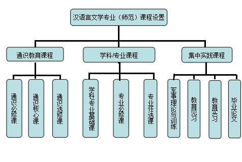 古代汉语(1)、古代汉语(2)、现代汉语(1)、现代汉语(2)、古代文学(1)、古代文学(2)、古代文学(3)、现代文学、当代文学、外国文学(1)、外国文学(2)、文学概论、创意写作、语言学概论、教育学、心理学。