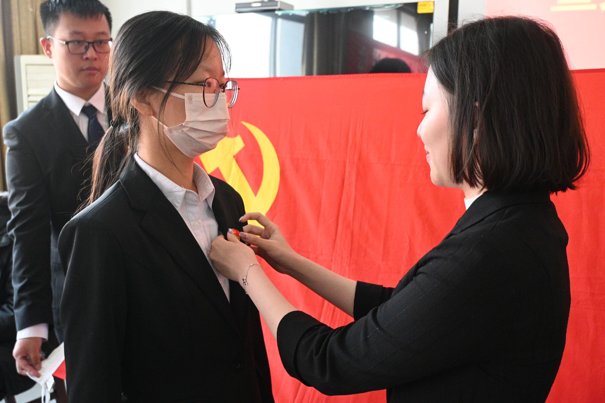 党委向新党员同志加入党组织表示热烈祝贺,并提出三点希望,第一,希望同学们将入党日期当作自己的第二个生日铭记在心,在组织上入党的同时,思想、行动上也要入党。第二,希望同学们履行党员义务,践行入党誓词,充分发挥共产党员的先锋模范作用。第三,希望同学们厚植文化自信,努力践行社会主义核心价值观,将个人发展符合国家社会整体需求,让“小我”自觉融入“大我”,让个人与时代共振。