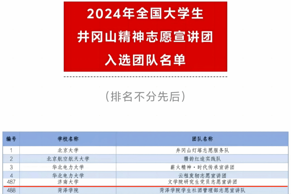研究生党员志愿宣讲团入选2024年井冈山精神志愿宣讲团、“延安情,中国梦”宣讲团入选2024年全国大学生延安精神志愿宣讲团、“大‘核’磅礴,初心在肩”宣讲团入选2024年全国大学生“两弹一星”精神志愿宣讲团。