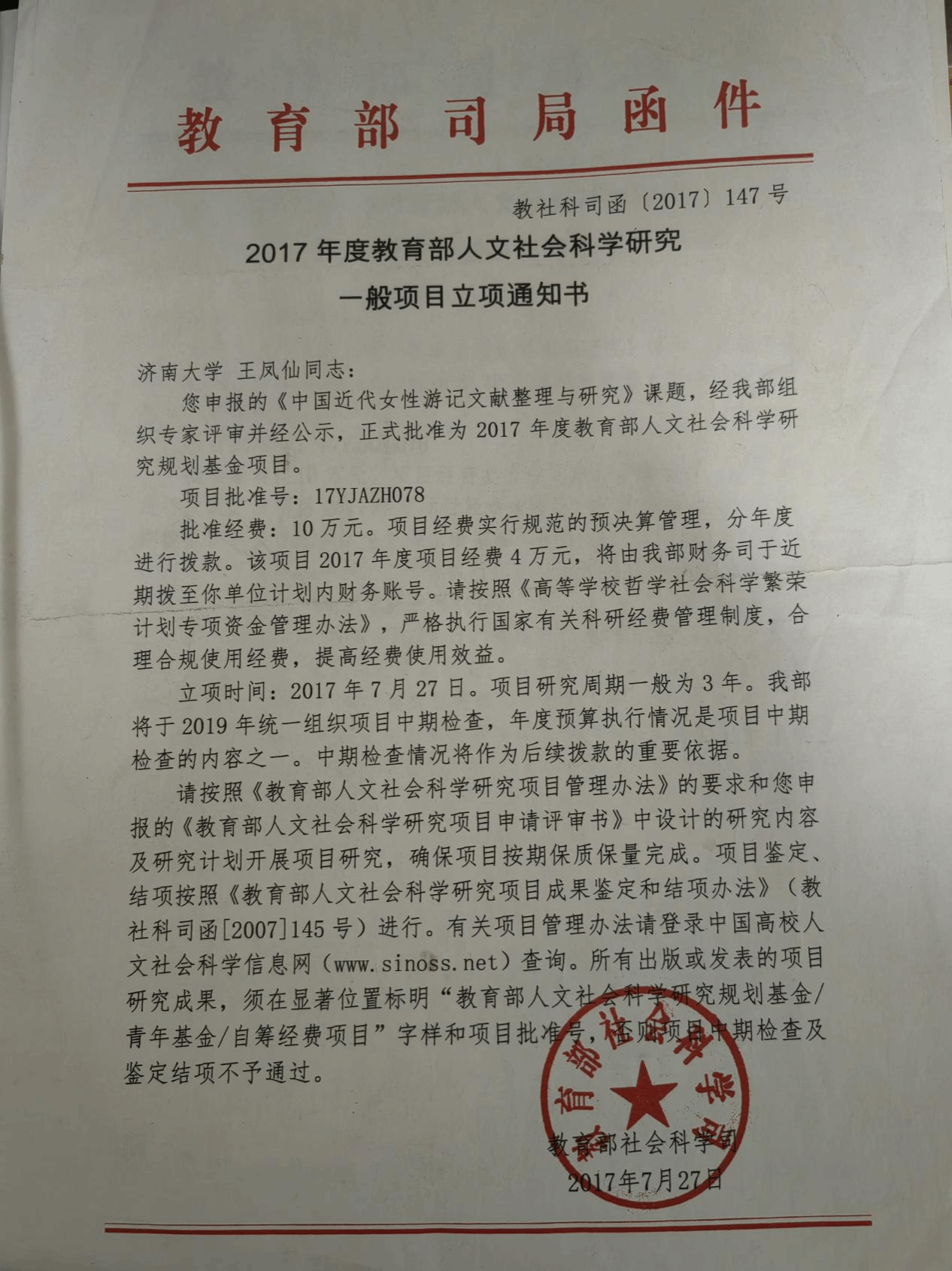 山东省社科项目《中国近代女性游记文献整理与研究》简介