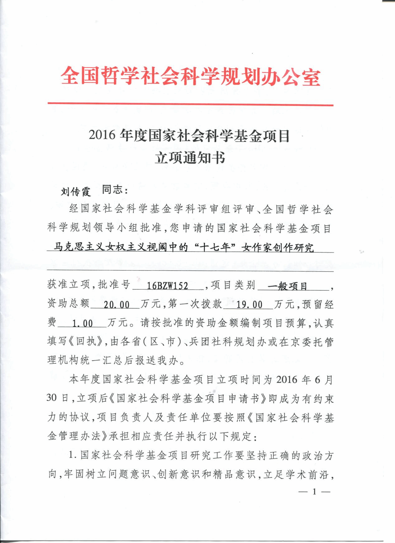 国家社科项目《马克思主义女权主义视阈中的“十七年”女作家创作研究》简介